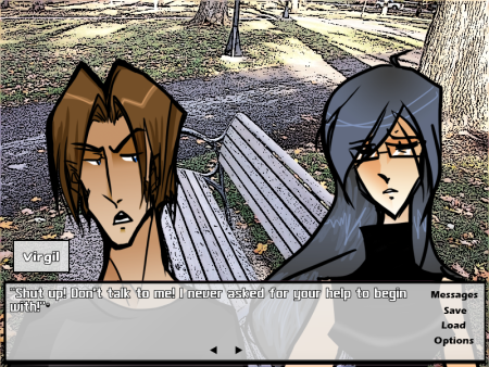 Thanatos Contract is the story of Virgil Birmire, a high school student in the town of Autumn Gray. After his father died in a car crash and his brother went into a coma from said crash, Virgil keeps himself locked into the online world of Shiniablo, a forum for the depressed and down-trodden. There he interacts with his only two friends, AnimeFan21 and Mistress Eternity.